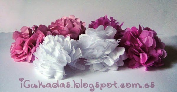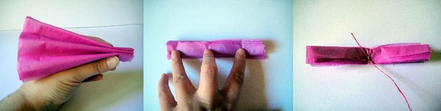 1. Para empezar vamos a hacer unos pompones con el papel seda, hay mil tutoriales de como hacerlos, pero os cuento un poco como se hacen. Primero recortamos varios rectángulos de papel seda de las mismas medidas, el tamaño según lo grandes que queramos que sean.