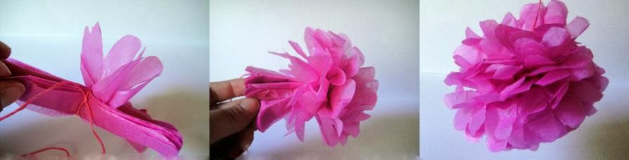 4. A continuación vamos separando los papeles con cuidado para que no se rompan, hasta formar el pompón.