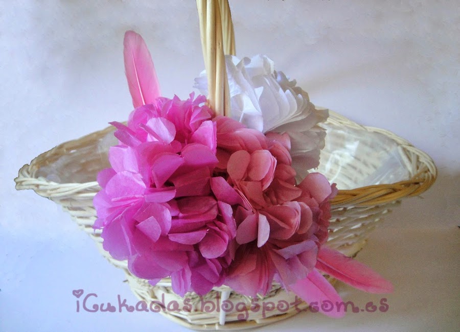 Esta en concreto va en rosa y blanco, porque el ramo de la novia y los regalitos llevaban esos tonos, pero aquí dejo la idea y luego tú la interpretas como quieras, con los colores que más te apetezca. Empezamos??