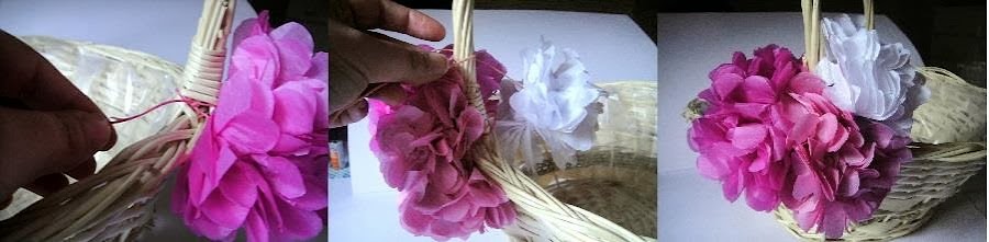 5. Ya tenemos nuestro pompón, ahora vamos a hacer dos más, uno blanco y otro en rosa más claro, yo voy a usar solo 3 porque voy a decorar solo un lado de la cesta, si quieres hacer 6 y decorar los dos lados, o hacer solo 2 pompones grandes uno para cada lado, eso ya al gusto de cada un@.