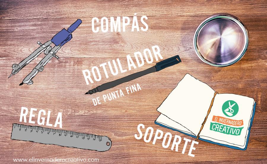 Para dibujar un Mándala vamos a necesitar un compás (Te vale el del cole) y una regla. El rotulador o el bolígrafo es muy personal, puedes usar Rotrings, bolígrafos normales, rotuladores de punta fina… En negro suele ser el color base que mejor queda pero como pudiste ver en el vídeo yo combiné en la base varios colores. Esto lo dejo a tu elección.