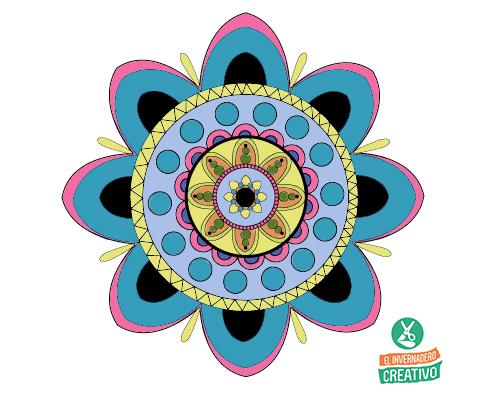 Puedes seguir completando el diseño con tus propias ideas. Recuerda los pasos básicos para el siguiente mándala y échale imaginación.
