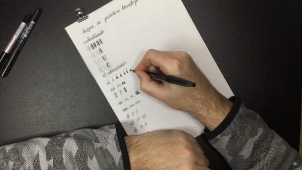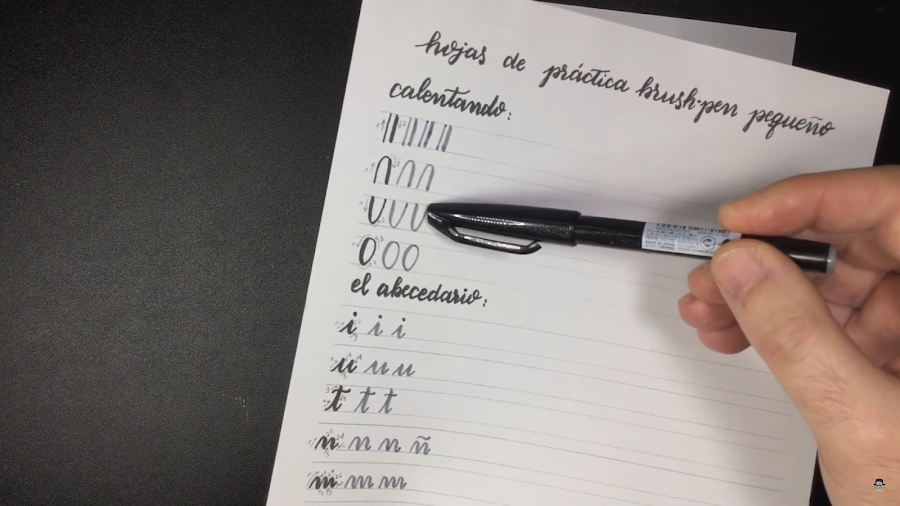 Aunque el rotulador sea de tamaño parecido a un bolígrafo normal, se tiene que sujetar un poco más alejado de la punta e inclinándolo bastante hacia el papel. De esta manera, conseguir trazos gruesos es mucho más sencillo.