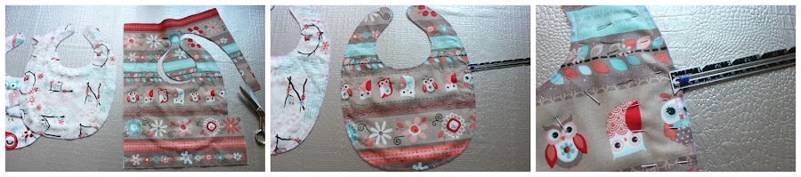 Truco: ponemos alfileres alrededor de los baberos para tener todos los bordes bien sacados y coserlos mejor