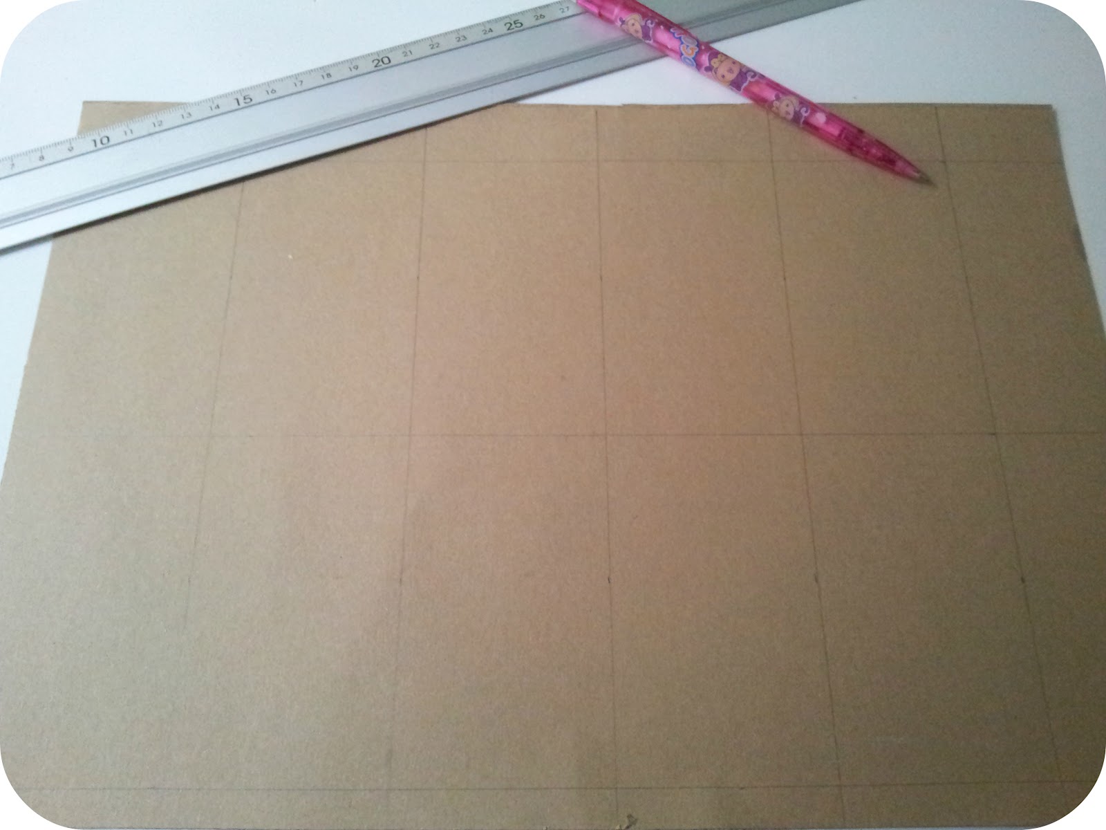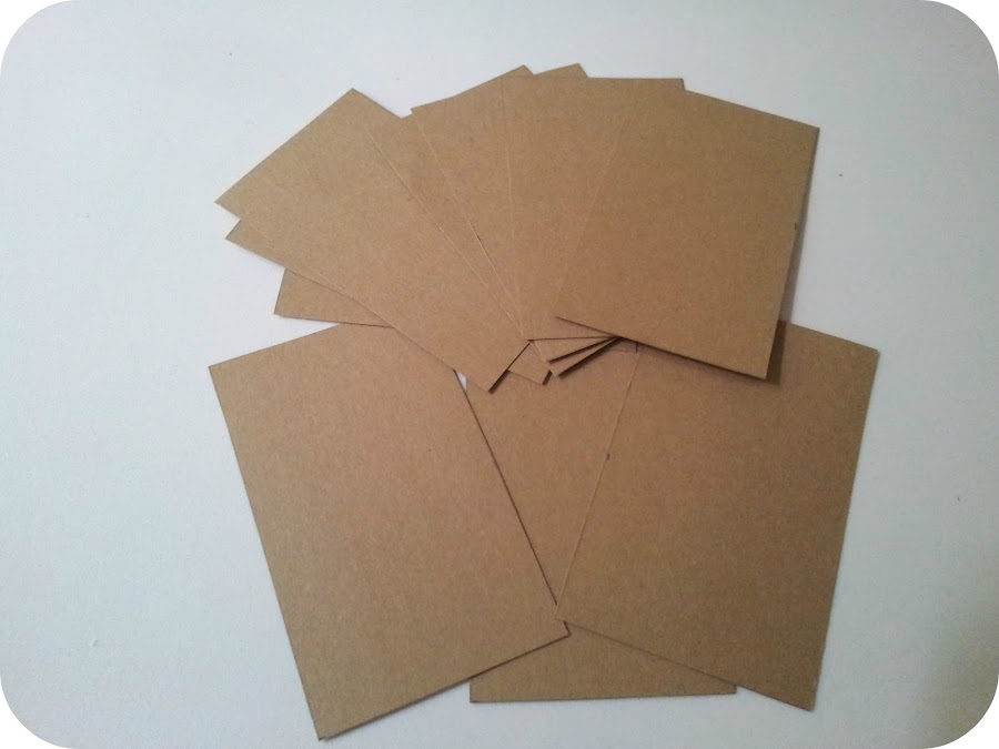 Comezamos marcando con el lápiz y la regla las medidas de las etiquetas en la cartulina marrón. El tamaño es a nuestro gusto. Yo las he marcado de 6x10 cm.