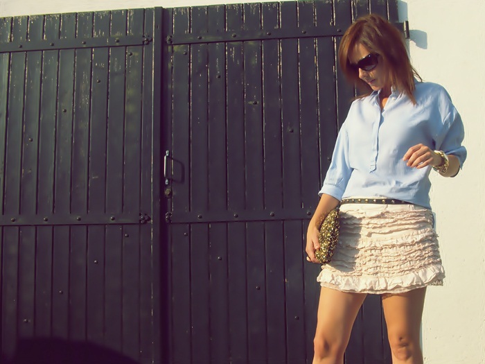 Casual look de HendayeStyle con la versión dorada del clutch.