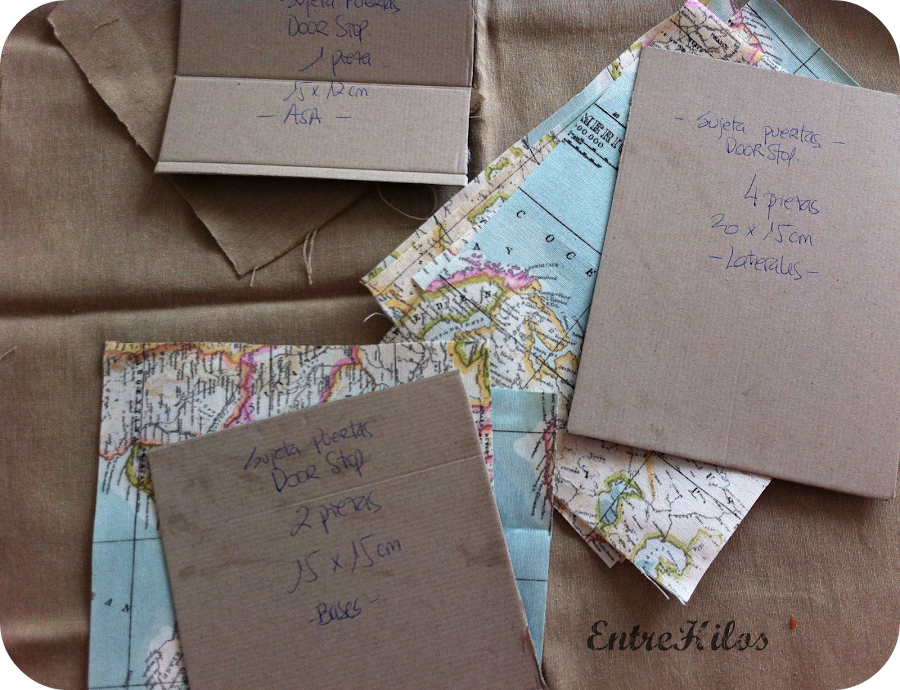 Tengo esta tela "mapamundi" que es tipo loneta, y me pareció que quedaría bien. Además la combiné con otra marrón de aspecto un poco rústico, pero también fuerte.