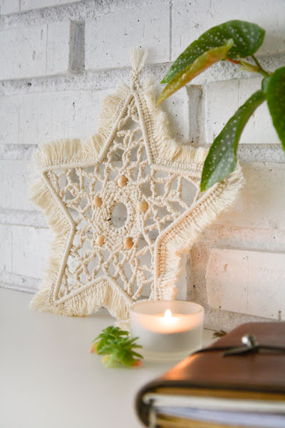 Con el tiempo justito, como suele ser costumbre ^-^, a pocos días de navidad os traigo esta estrellita navideña de macramé súper bonita por si sois de esos afortunados que tenéis vacaciones estos días y todos los regalos comprados y podéis pasar las horas haciendo manualidades para la decoración de la casa. ¡Vamos con ello!