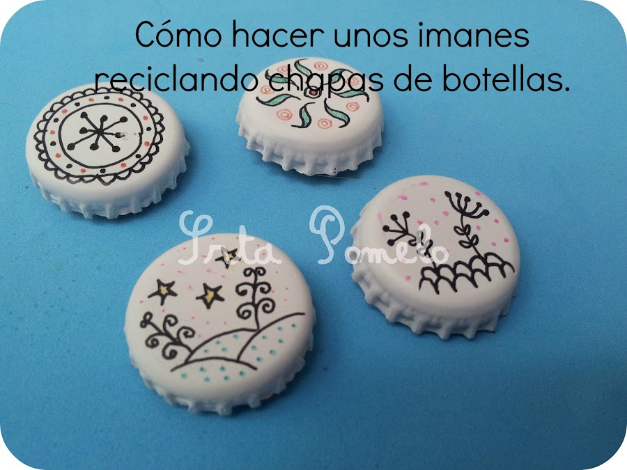 Me encanta reciclar...bueno, ya lo sabéis. Me gusta trasformar cosas que ya no sirven para convertirlas en cosas útiles. Con unas chapas de botella me he fabricado unos imanes para mi nevera, de forma rápida y sencilla.