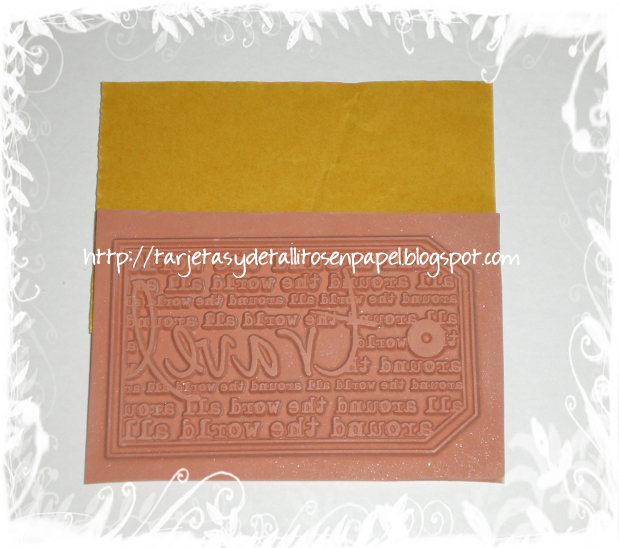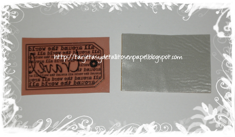 El siguiente paso será, entintar el sello con la Stazon y girar la espuma adhesiva hacia la izquierda