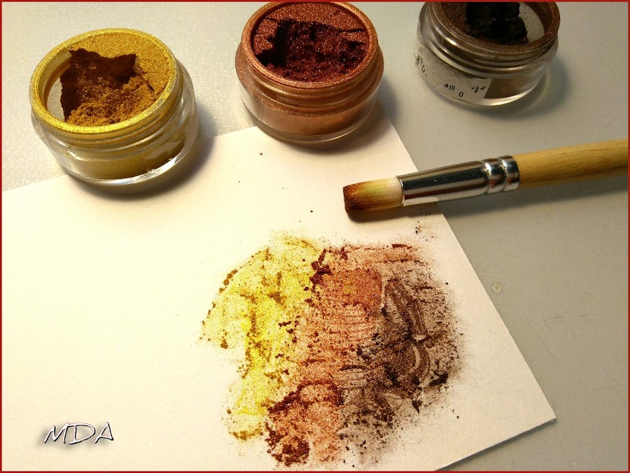 Con un pincel de pelo suave vamos poniendo los polvos sobre la imagen; uno, dos, tres... los colores que tu quieras.