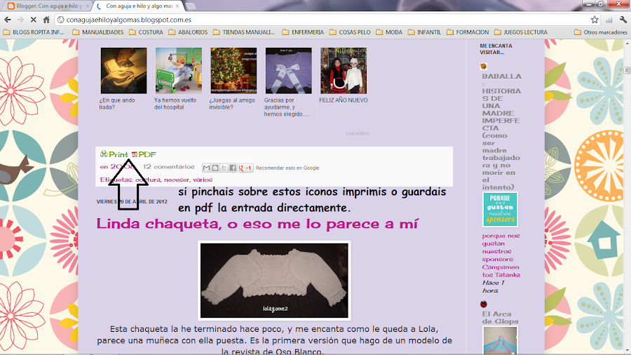 Por último deciros que si queréis tener el tutorial guardado, hace tiempo active un gadget al final de las entradas desde el que podeis imprimirlas directamente en formato texto o bien guardarlas en pdf. Que tenemos que hacer pues mirad la imagen.