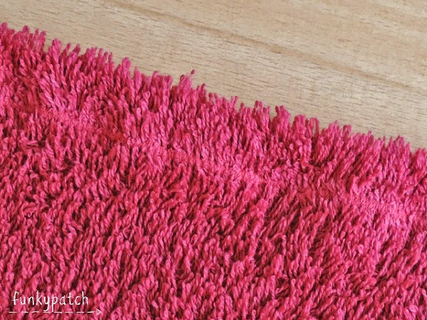 Cortamos la toalla de baño de 102cm por el ancho de la tela (150cm).