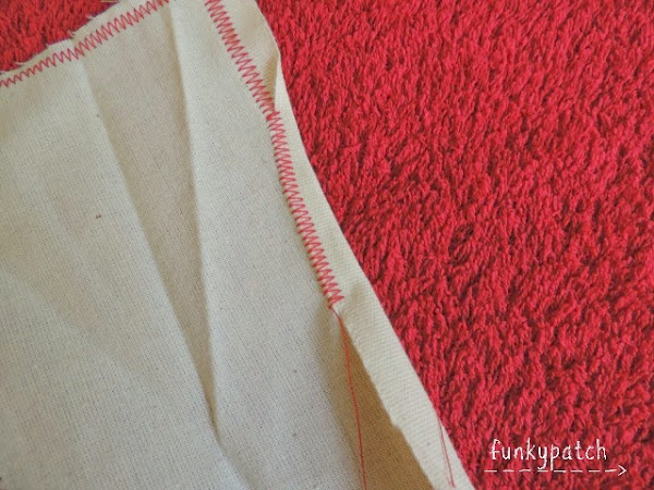 He dejado 1cm a cada lado para coser el dobladillo con un zigzag. En este caso el dobladillo se dobla solo una vez. Así es como queda. Me gusta el resultado porque haciéndolo por los 4 lados parece una decoración de la toalla.