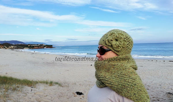 Llega el frío y como no podía ser menos os traigo un calentito y hermoso conjunto de bufanda hecha a dos agujas y un gorro a ganchillo adornado con una linda flor. ¿Quién ha dicho que hay que escoger entre estar calentita o glamurosa? Mejor las dos cosas jejejeje ¿Vosotras que pensáis?