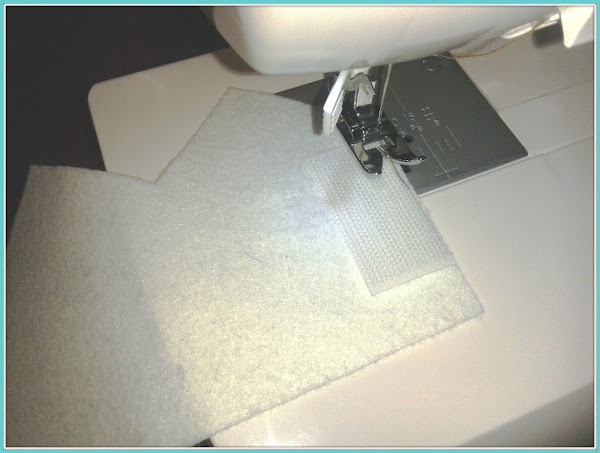 Una vez cosidas todas las figuras, hay que juntar el fieltro de arriba con el de abajo para tapar las costuras. Si se decide hacer un cierre con velcro, se coserá antes de unir las dos piezas. En cambio, si se hace un cierre con lazo, se puede coser al mismo tiempo que se unen las partes. En este caso el cierre es con velcro, una de las piezas irá sobre el velcro verde y otra cosido sobre el velcro blanco. Yo lo coso con máquina de coser pero también se podría hacer a mano.