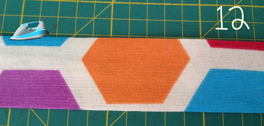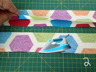 2. Plancha las tiras a la mitad, dejando el revés de la tela hacia fuera.