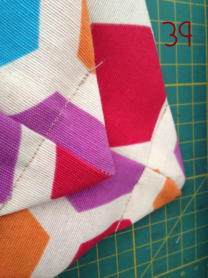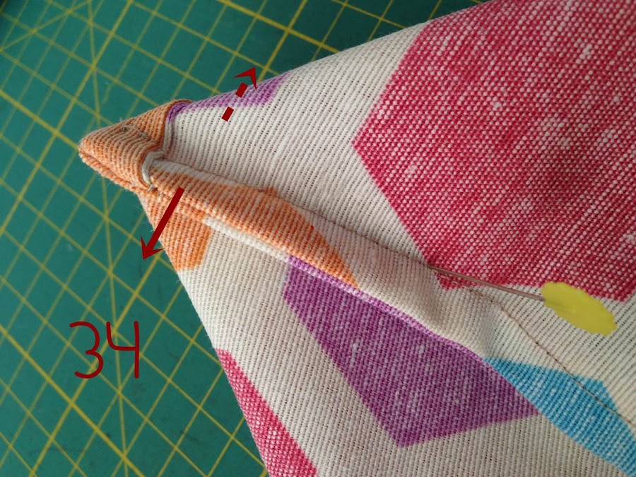 32. Da la vuelta de nuevo y haz lo mismo con la parte de abajo, pero esta vez pasa la costura y luego recorta un poco las esquinas.