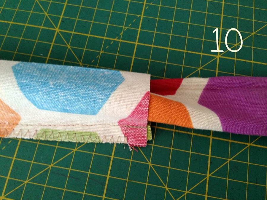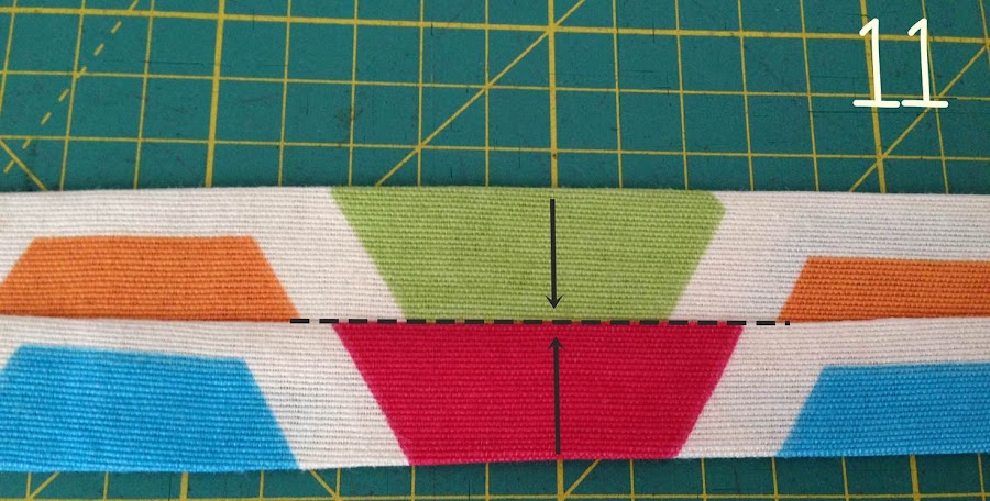 5. Asegura bien al empezar y al terminar la costura, y fíjate que la cinta sobresalga por fuera de la tira.