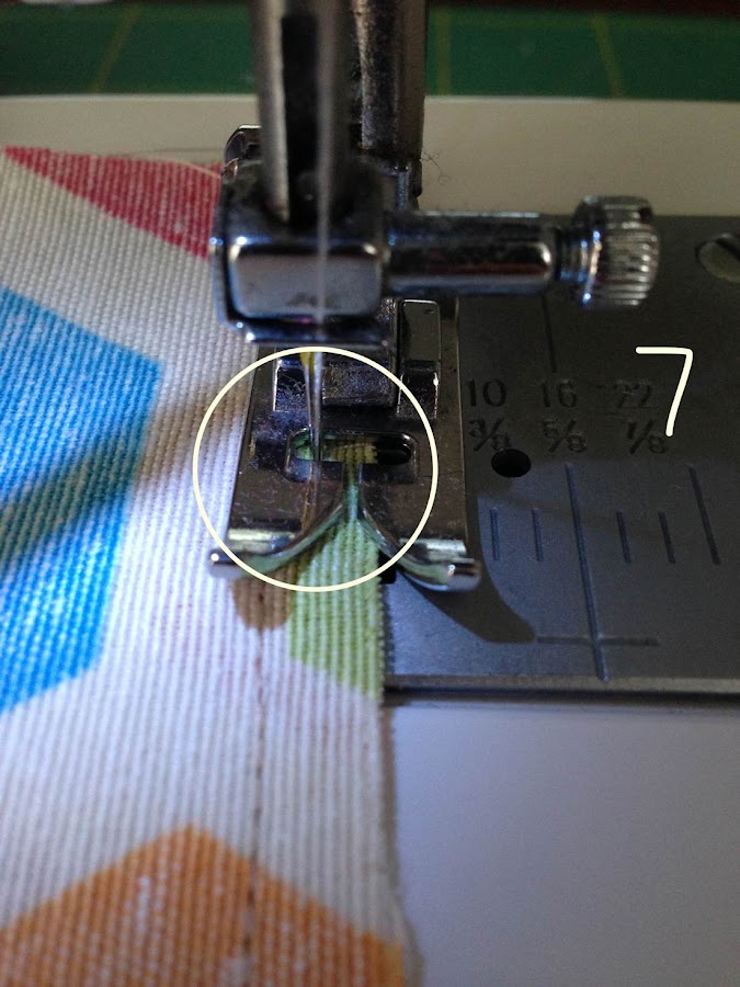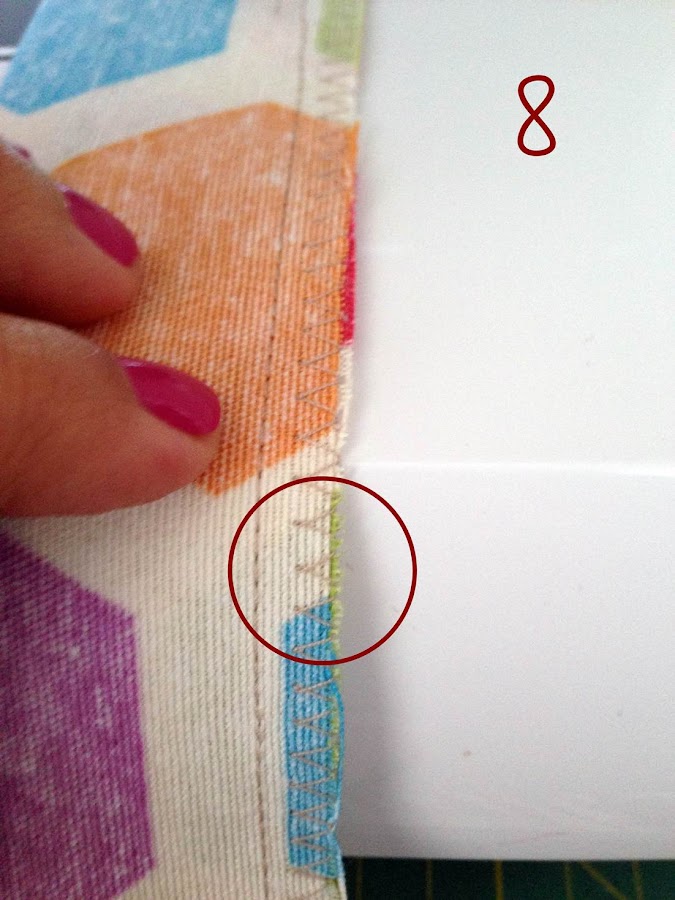 7. y la otra parte de la puntada en zig-zag te quede a la derecha de la costura que hicimos antes