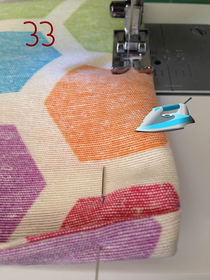 33. Da la vuelta, plancha y vuelve a coser con la aguja a la izquierda.