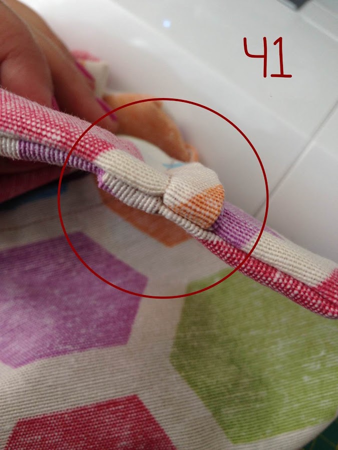 31. Asegura bien al principio y al final. Así tenemos el interior y el exterior de nuestra bolsa bien rematados!