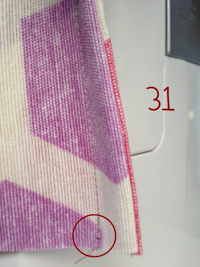24. Ahora repetimos la costura, pero poniendo la aguja a la izquierda del todo