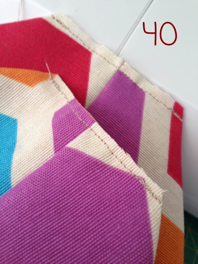 41. Ahora puedes ver que tus cuatro costuras coinciden perfectamente, de ahí la importancia de que al formar la esquina, la costura de la parte inferior y la de los lados vayan en direcciones opuestas, ¿ves?