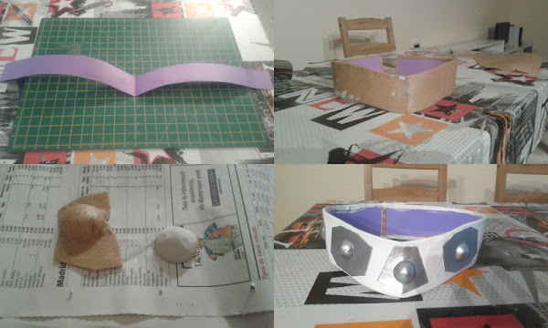 Lo primero era hacer una base. Hice un rectángulo de 65cm de ancho y añadí 10cm más de largo a la talla de mi cintura en cartulina (o el material que hayamos elegido para hacer la base). Para hacer la forma en "V" de la parte frontal es más sencillo de lo que parece. Una vez tengamos la forma de la parte superior y la hayamos cortado, la añadimos a la parte inferior y añadimos un centímetro más, ya que esa parte es más ancha que el resto del cinturón. Comprobamos que tiene la forma deseada y la pasamos a goma EVA, que es lo que le dará una base a nuestro cinturón.