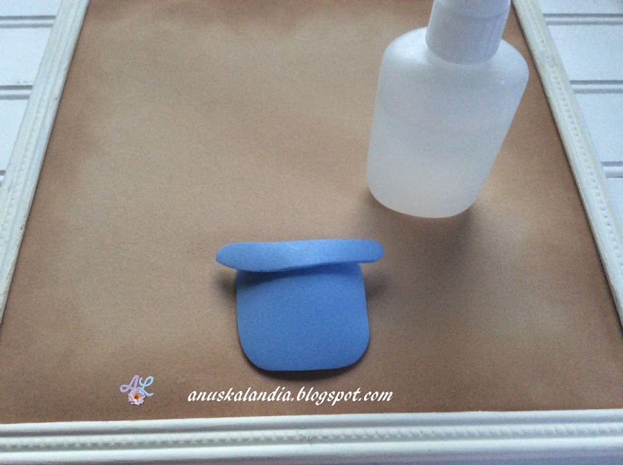 7.- Comenzamos con el montaje de las figuras. Primero la maceta, la colocamos sobre la plancha, hasta que ahueque. Pegamos el borde de la maceta en esta. También, ponemos gotas de pegamento alrededor de ella, por tres de las partes. Pegamos en forma ahuecada.