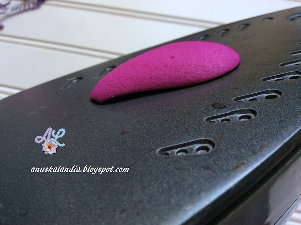 12.- Igual que con la maceta, colocamos los pétalos en la plancha hasta que ahuequen. Ponemos pegamento instantáneo por la parte interior, alrededor del pétalo. Pegamos como se ve en la foto.