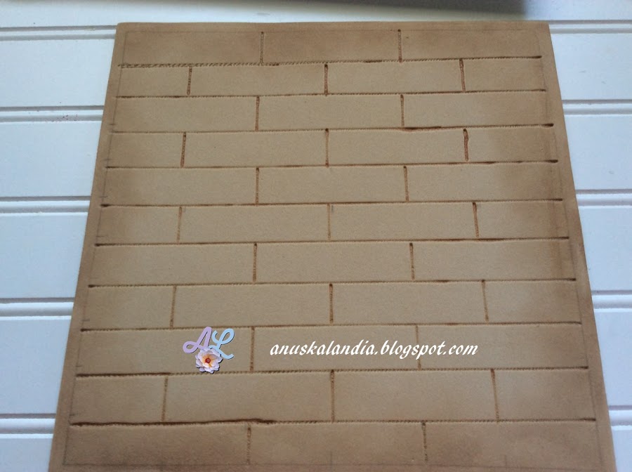 Así, consecutivamente. Pasamos el pirograbador para hacer los ladrillos, utilizando la regla metálica.