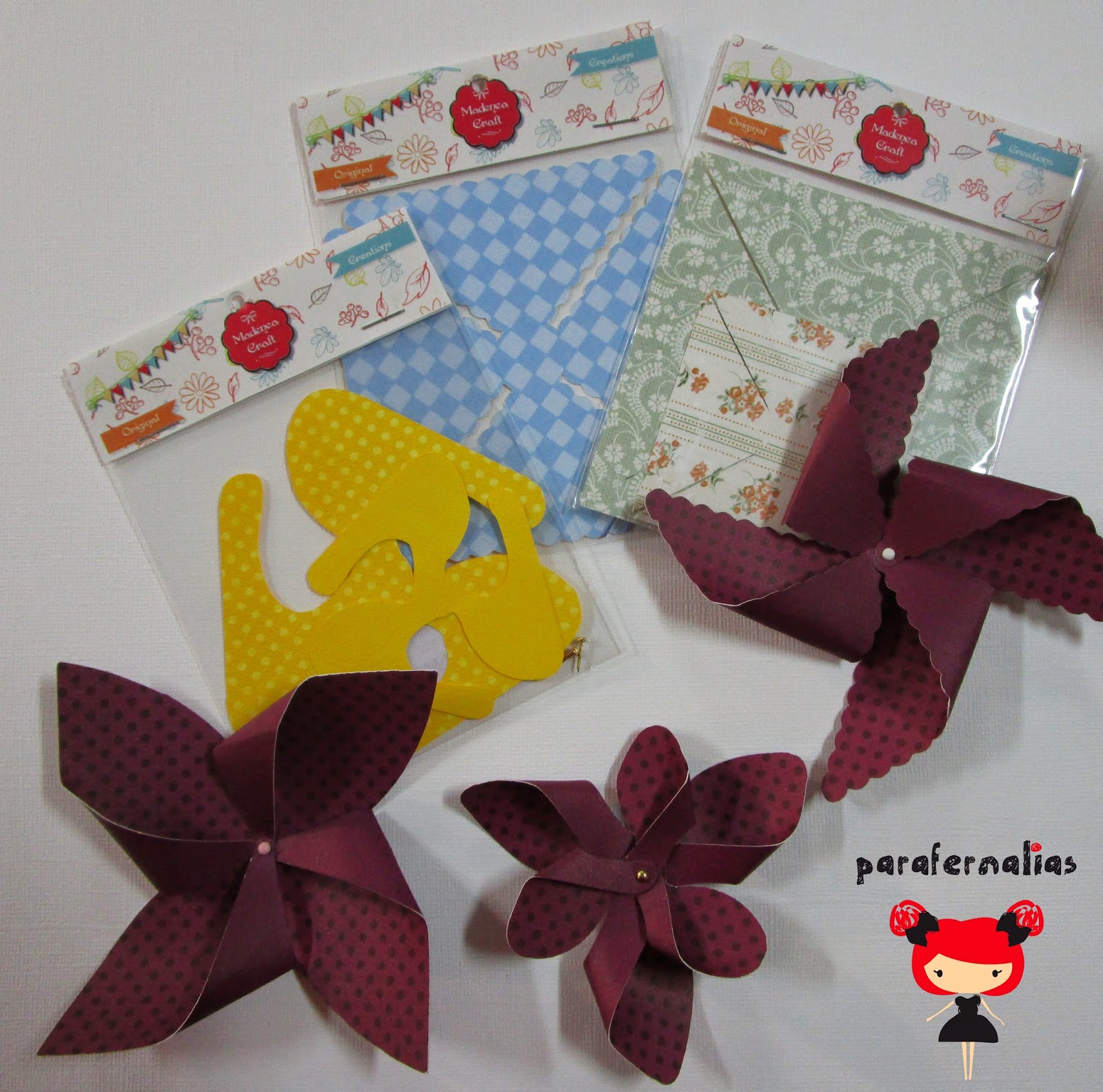 Armamos los molinillos, este paso es muy sencillo, solo hay que llevar al centro una esquina sí, una no, una sí, una no... y luego le pondremos el encuadernador para que quede fijo.