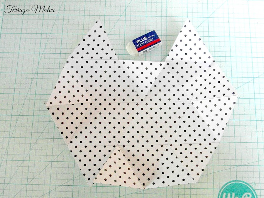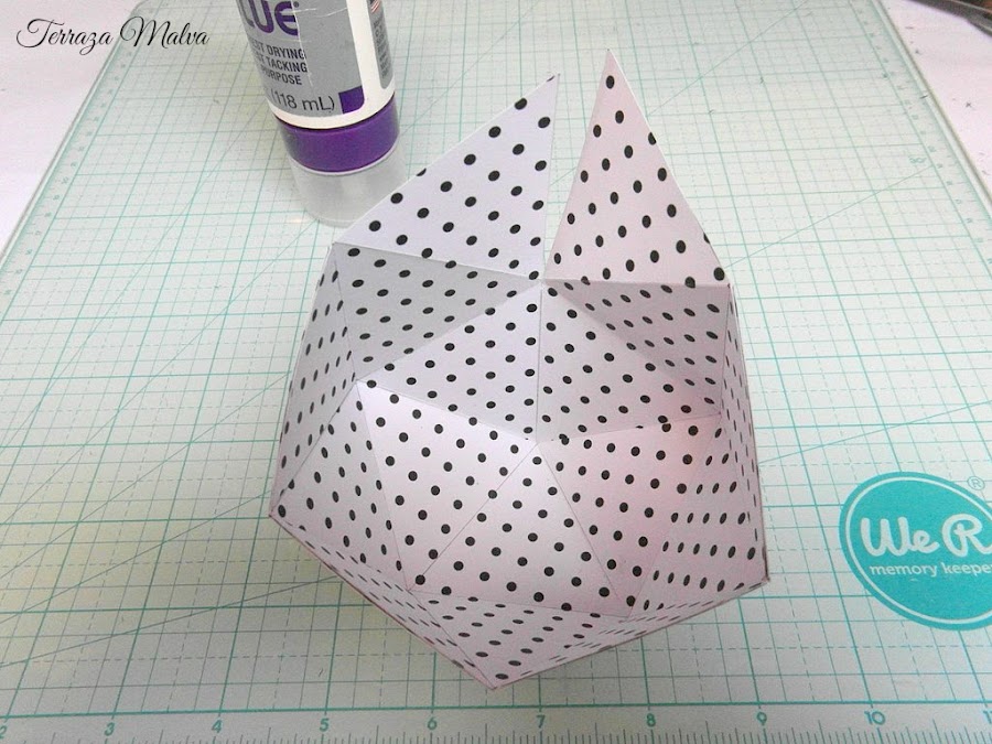 Sólo queda pegar los triángulos marcados con el símbolo, situándolos debajo de los adyacentes.