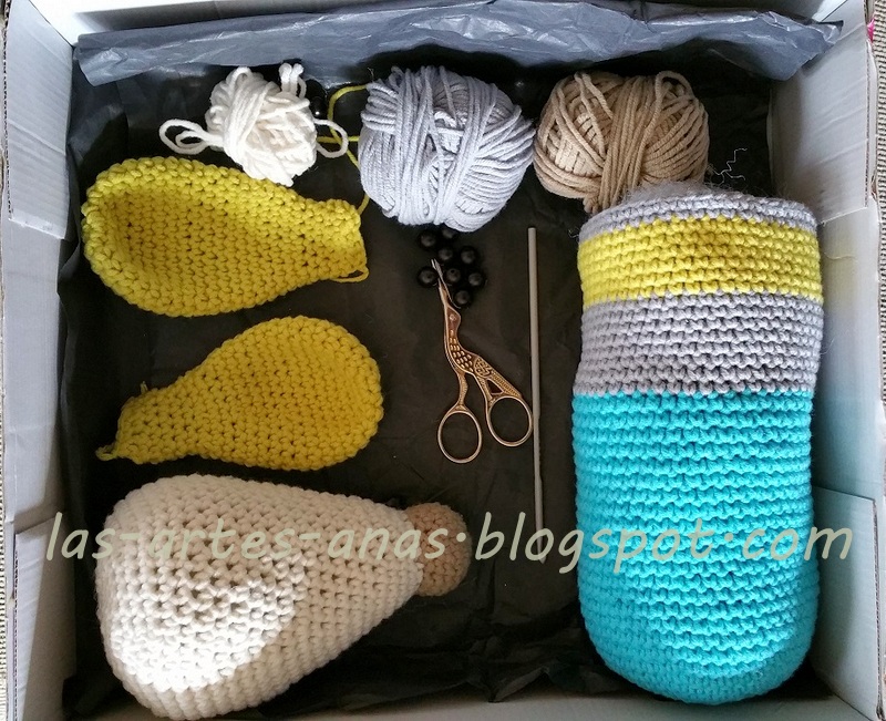 Hacemos 4. Comenzamos con los colores disponibles, tejiendo en espiral.
