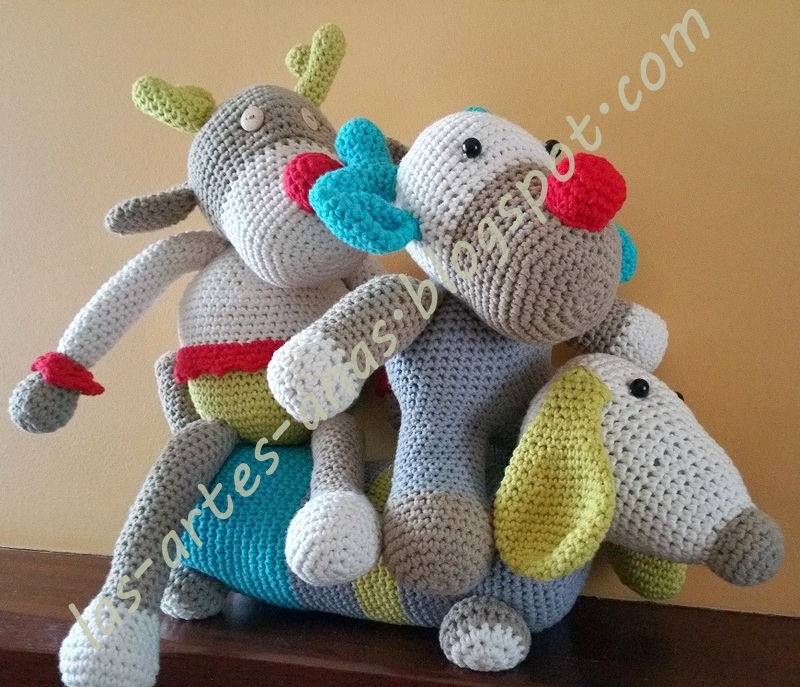 Me han sobrado unos restos de algodón acrílico KATIA-ALABAMA de mi anterior proyecto navideño renos proyecto cal ,y me apetecía tejer un perrito salchicha, ME HE PUESTO MANOS A LA OBRA, aunque he cambiado varios detalles de este patrón, QUE A LA VEZ ya ha sido también modificado