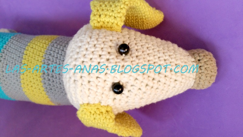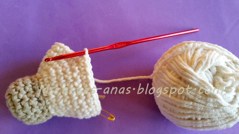 Comenzando a tejer el morrito,que va unido a la cabeza
