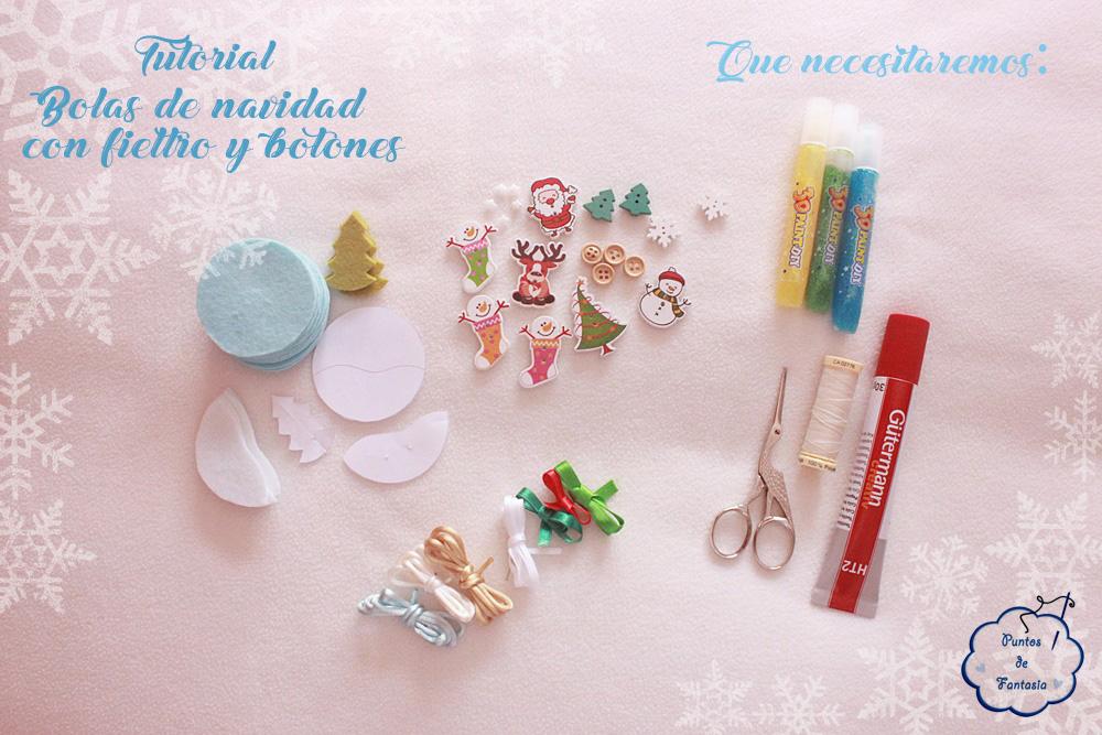 Botones de colores y formas navideñas, nosotros hemos usado botones de madera ilustrados en forma de árbol de navidad, reno, papa noel, muñeco de nieve, abetos, copos de nieve y botones redondos normales, además de mini botones en forma de estrellitas de varios colores entre otros –