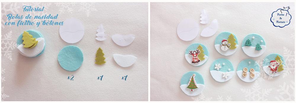 Para este tutorial hemos realizado 7 bolas de fieltro navideñas, pero os animamos a que dejéis volar vuestra imaginación y creéis nuevos diseños y composiciones.