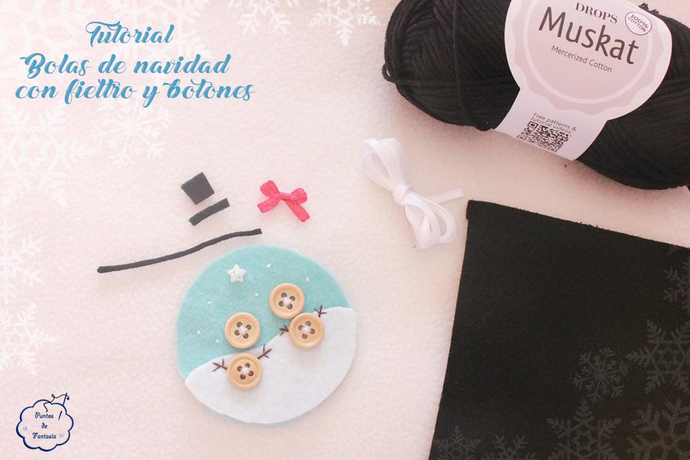 Una de las bolas más original, son unos botones redondos de madera que forman muñecos de nieve. Si has decidido hacer este modelo, necesitaras además de los materiales expuestos al principio: