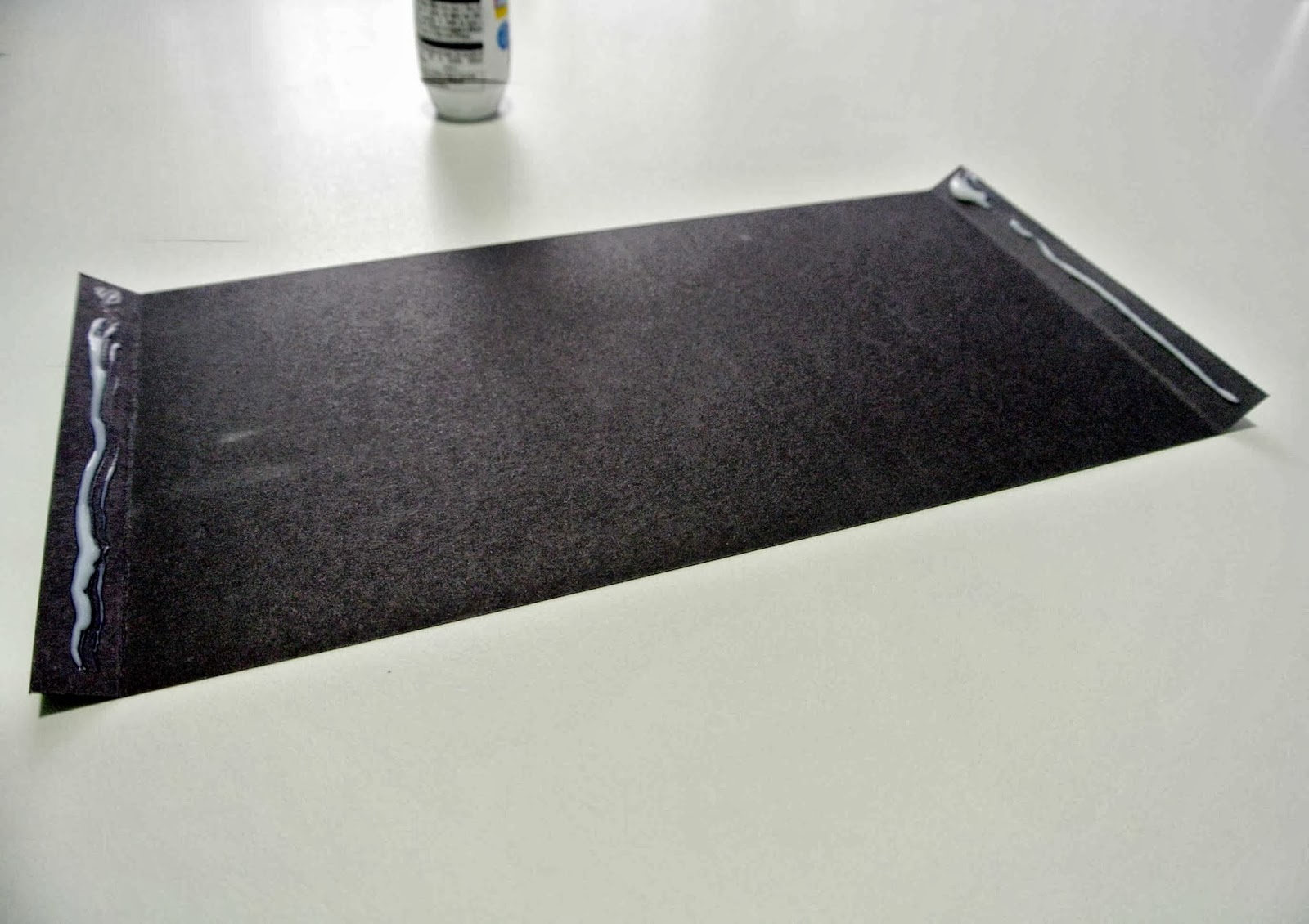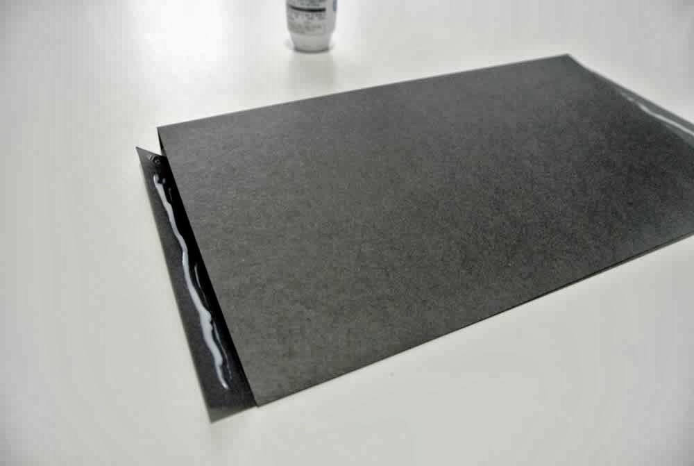 4. Unimos las cartulinas encolando los laterales de las cartulinas de 28x14 y pegando la cartulina de 25x16 encima.