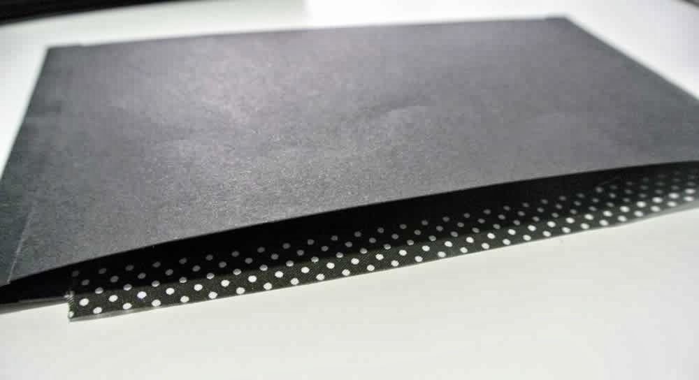 10. Pegamos la cinta para el cierre y el fuelle a las tapas.