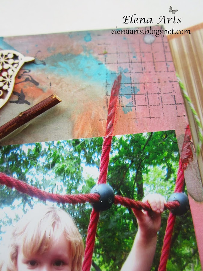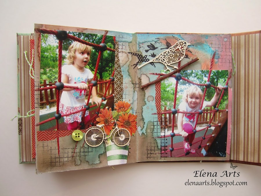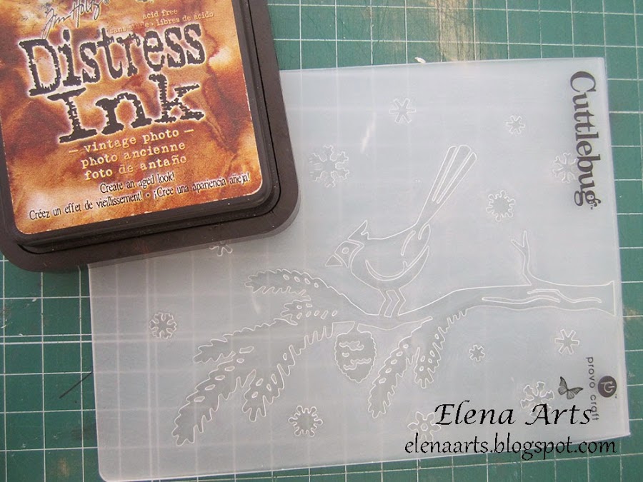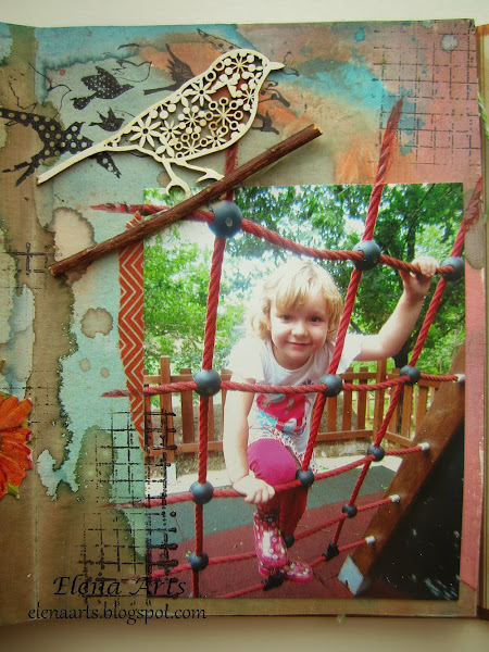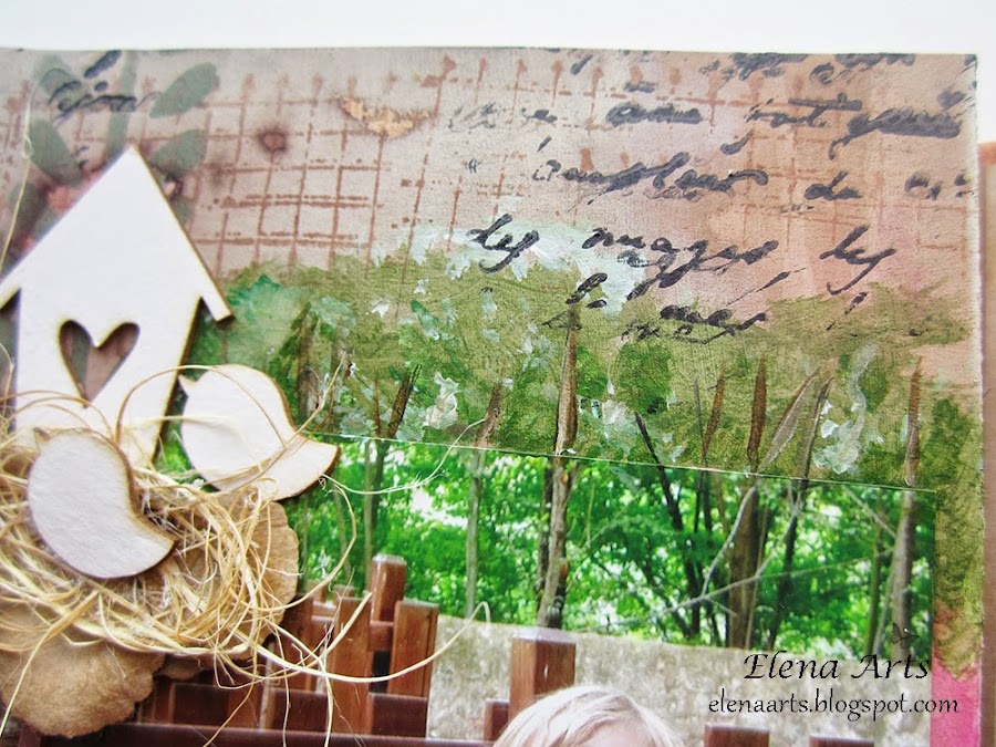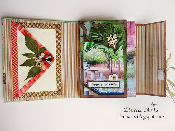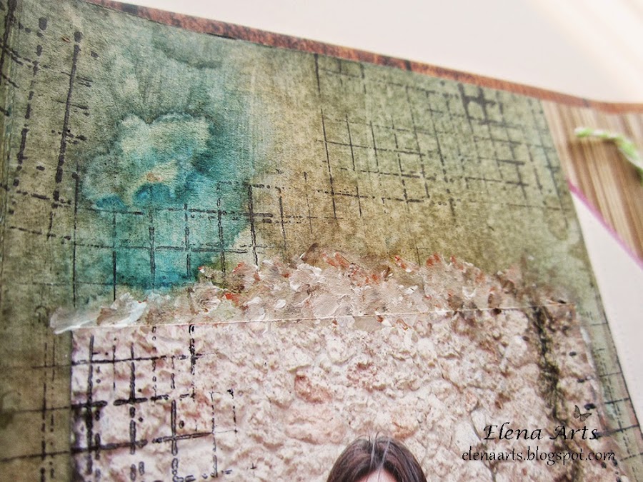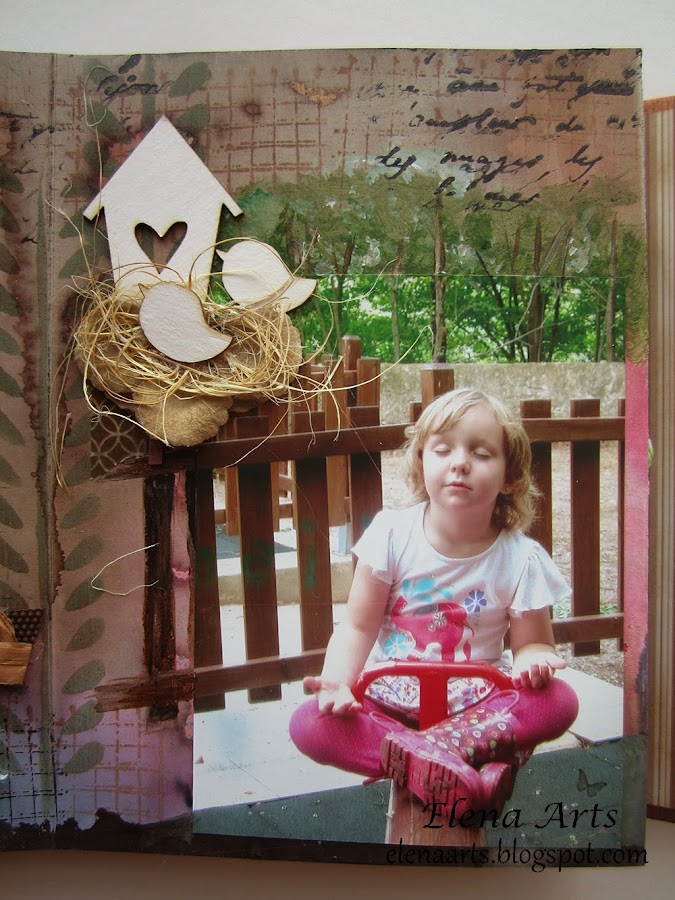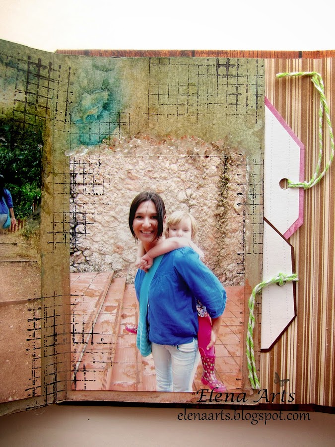 Y volviendo a las páginas... Podemos añadir algunos sellos, o incluso, si teneis carpetas de embossing con algún dibujo que os guste, podemos estamparlo igual.