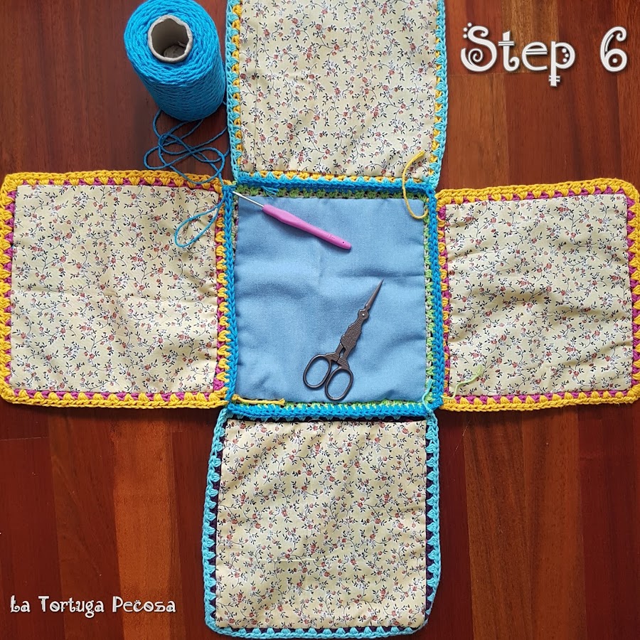 Paso 5: Los cuadros se unen sobre el cuadro de la base de nuestro bolso, formando un simbolo +.