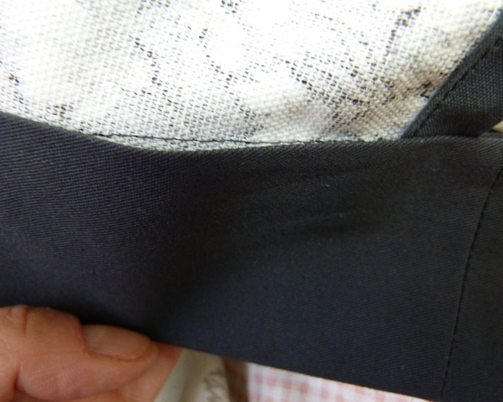 Para eso, lo primer que tenemos que hacer, es pasar un pespunte sin rematar, por todo el borde del bolsillo, a excepción de la entrada del bolsillo.