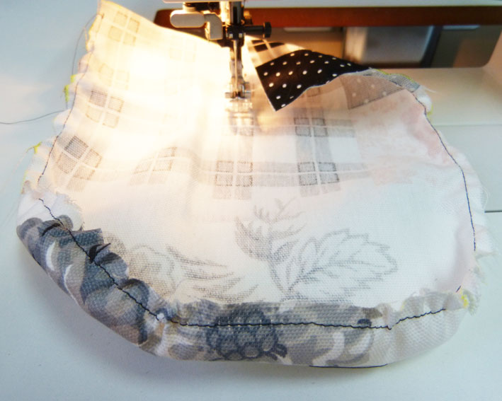 Tirantes: pasar un pespunte a un centímetro del borde, dejando solo el espacio lateral para dar la vuelta.
