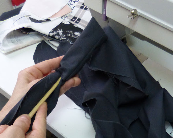 Le damos la vuelta, doblamos y planchamos el bies hacia el exterior, tenemos que dejarlo bien igualado.