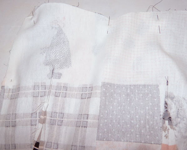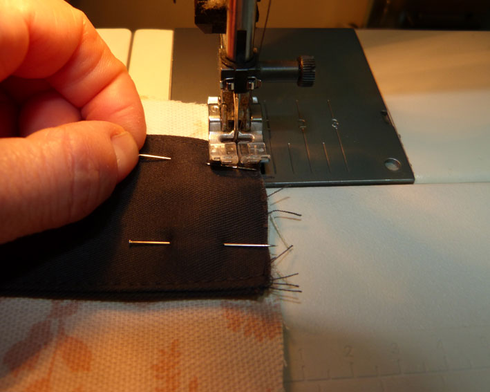 Sujetamos los bolsillos con alfileres, para mejor comodidad a la hora de coser en la máquina, hilvanamos.