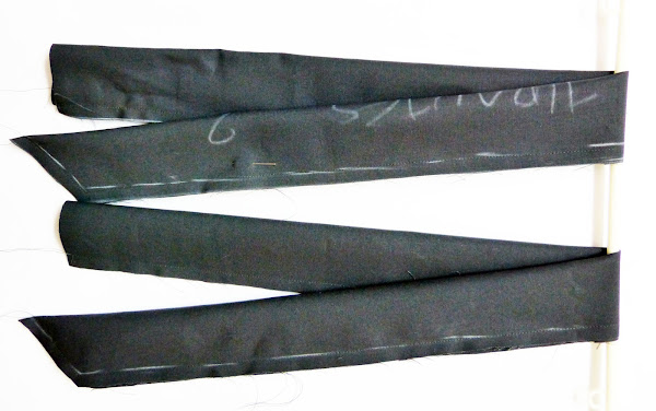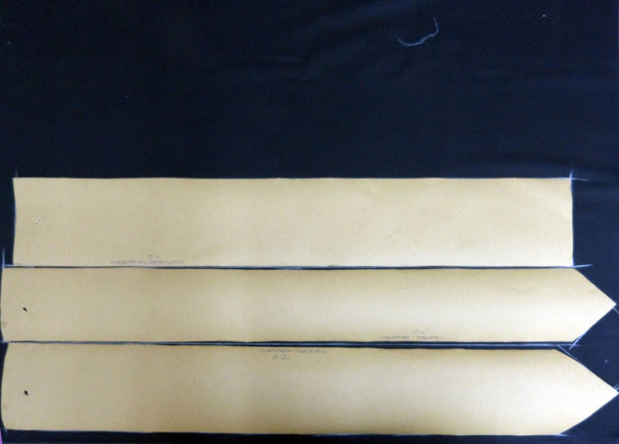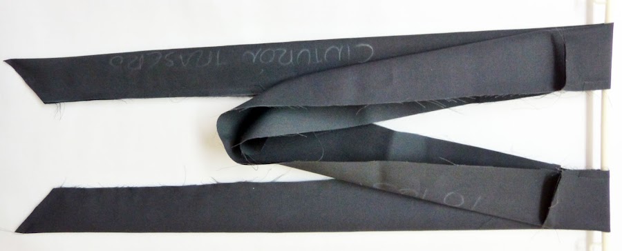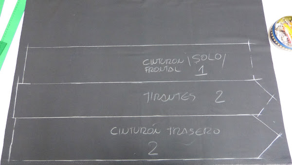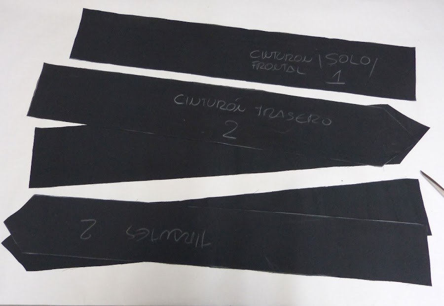 Cortaremos dos tirantes, dos piezas de la lazada y una pieza de la parte central del cinturón.
