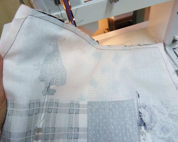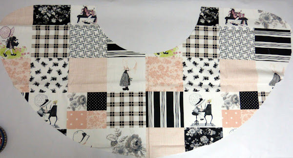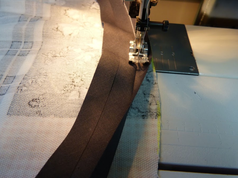 Ya sabes, borde del bies desplegado con borde de la tela (ruedo). Prestar especial atención, cuando cosemos la zona curva, ya que en esta zona, no hay que estirar nada, sino todo lo contrario, hay que dejar el bies un poquito flojo.